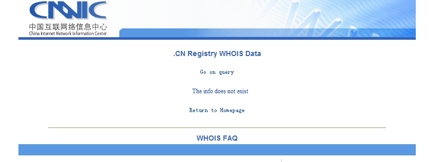 Case I: When the inquired domain name is not registered, it will prompt “The info does not exist”, and then you can try submitting application to registrar. The details are shown below: